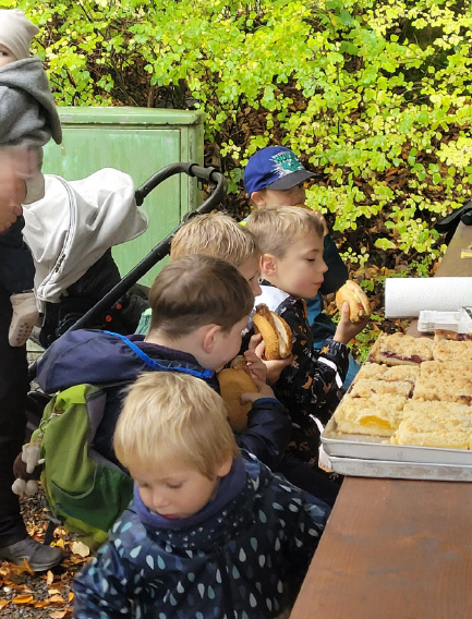 Damit es nicht zu anstrengend wurde, war auf der halben Strecke unserer Wanderung ein Stop mit Kaffee, Kuchen, Kaltgetränken und Süssem vorbereitet. Frisch gestärkt und ein wenig fröstelnd, leider wurden wir vom Regen nicht verschont, ging es dann weiter Richtung Dorfplatz. Hier war der Grill aufgebaut und wir konnten uns zum Abschluss unseres gemeinsamen Nachmittags über ein leckeres Würstchen freuen.